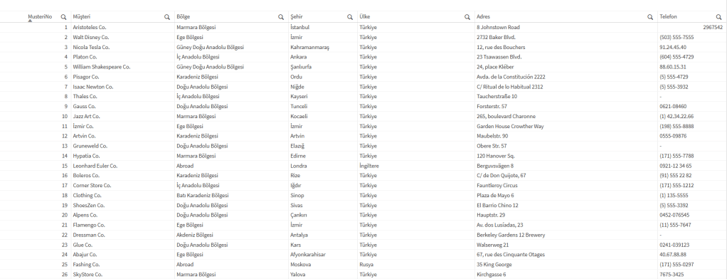 Qlik Sense’de veri analizi yaparken, tek bir kritere göre değil, birden fazla koşulu aynı anda sağlayan kayıtları filtrelemek isteyebilirsiniz. Bu durumda AND operatörü devreye girerek daha hassas ve hedefli sonuçlar elde etmenizi sağlar. Ayrıca NOT ifadesini kullanarak dahil etmek istemediğiniz verileri filtreleme dışında bırakabilirsiniz. Sonuçlar aşağıdaki gibi olacaktır.
