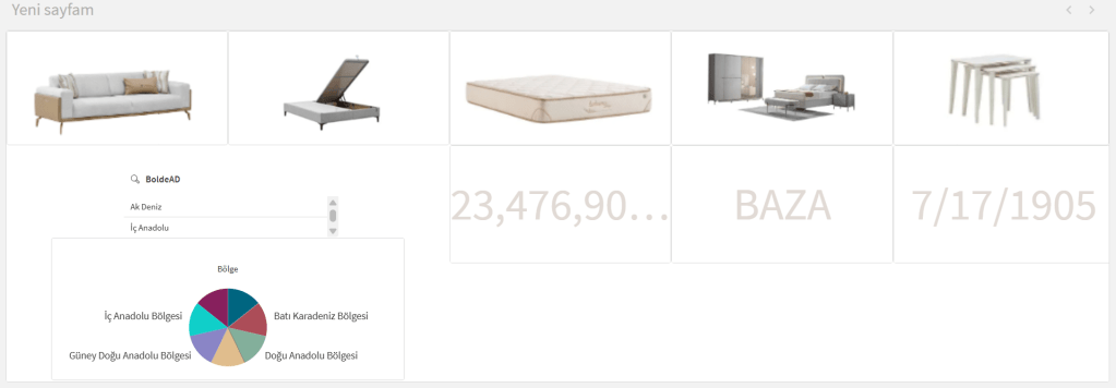 Yukarıda görmüş olduğunuz örnekte normal şartlarda parça parça yer vererek sayfayı aşağılara uzatmak yerine bu şekilde yapılan KPI,Grafik vb. araçları içerisine sürükleyerek kullanabilirsiniz.